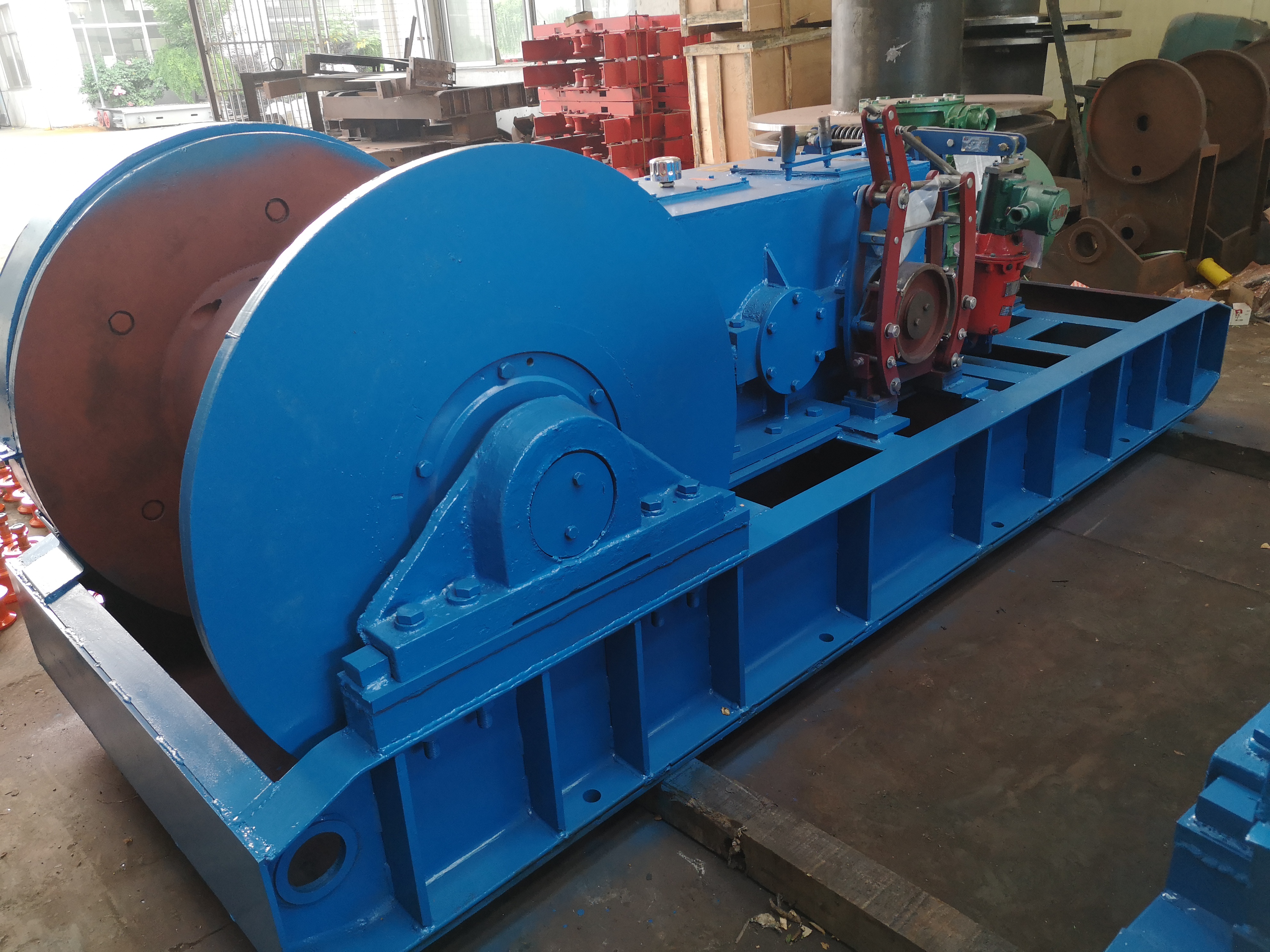 1、本绞车呈长条形,便于绞车的搬迁和固定。绞车宽度、高度尺寸较小,适于井下空间窄小的条件下工作。