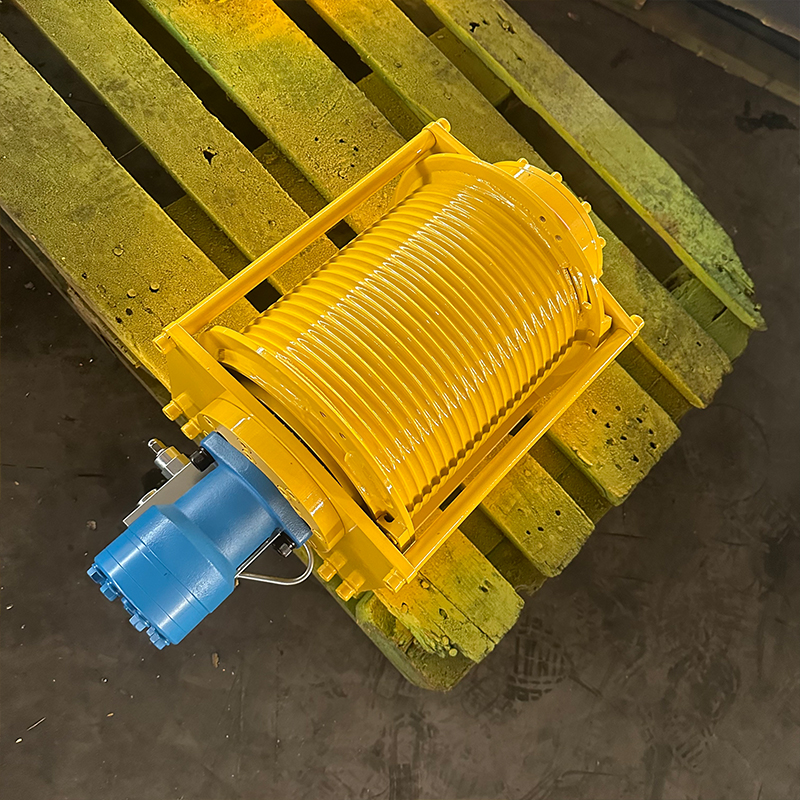 卷筒与制动系统:卷筒通过联轴器或齿轮与液压马达连接,缠绕钢丝绳以牵引负载;制动器多为液压释放、弹簧制动的常闭式结构,确保断电或故障时自动锁止。