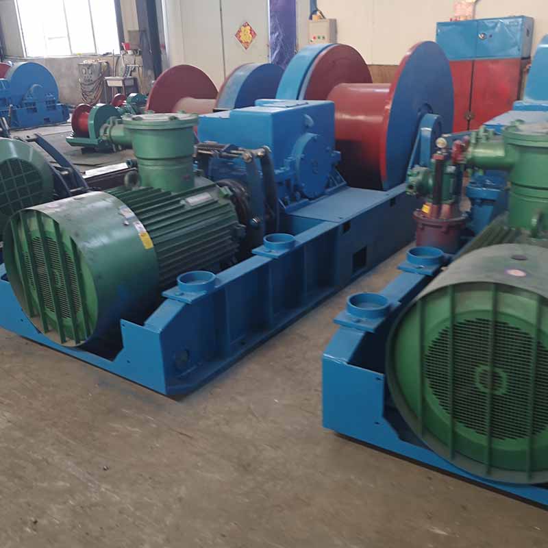 JSDB系列双速绞车可用于煤矿井下采煤工作面综采设备及各类机电设备的搬迁等辅助运输工作,也可用于煤矿井下采掘工作面、井底车场、上山下山、煤矿地面等处的矿车调度、物料运输等工作,用于上山下山时的坡度不得大于25。还可用于回采工作面的回柱放顶。该绞车具有快速和慢速两档速度,可根据现场的需要变换速度和牵引力进行不同条件下的工作。