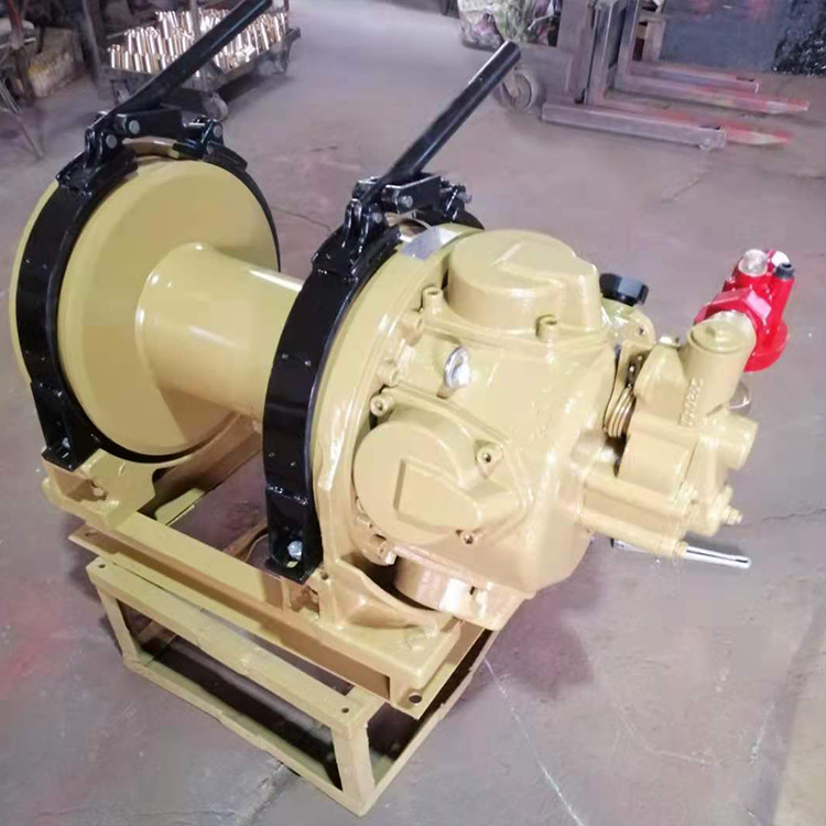 绞车由马达总成(气动机)、制动器总成、减速机构、卷筒、机座等主要部分组成。